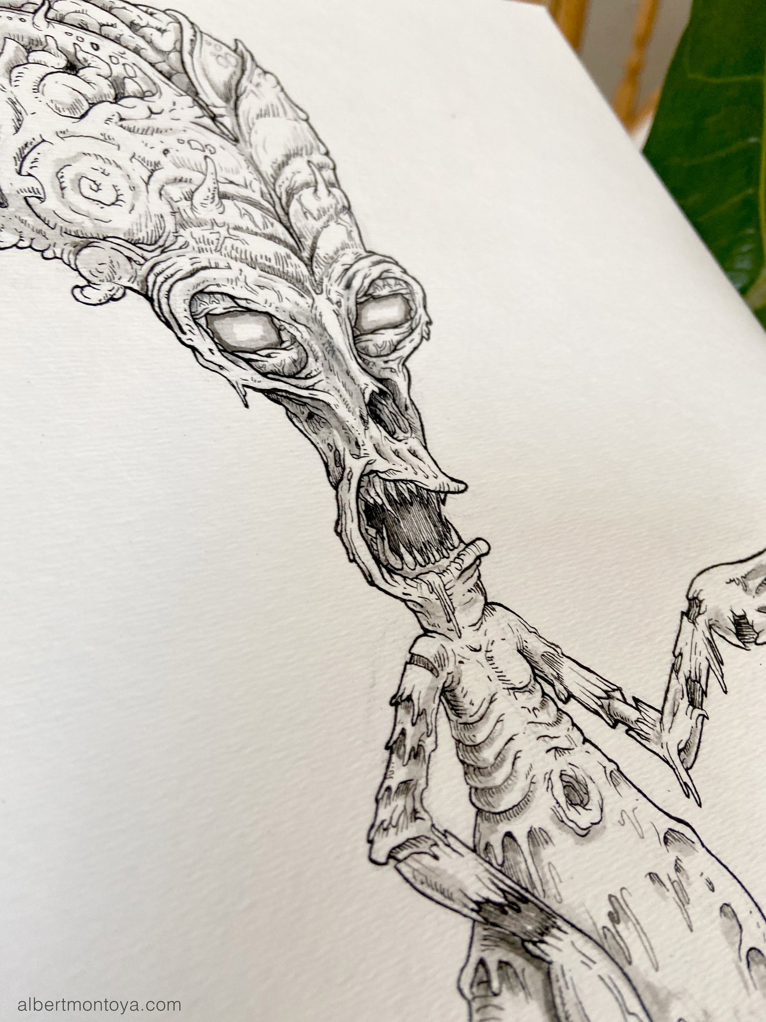 "Zombie Roger" original illustration by Albert F. Montoya. Pen and ink on coldpress watercolor paper. Signed and dated.